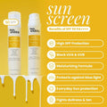 - Enriched with 2% Niacinamide, Kojic Acid, Vitamin C, Black Rice Water, and White Mulberry, it brightens and evens out your skin tone. It is sweat-resistant, non-greasy, and provides protection against UVA/UVB rays, tanning, and pollution.