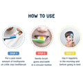- Apply a pea-sized amount of toothpaste & gently brush gums & teeth in a circular motion. Rinse, gargle & giggle.