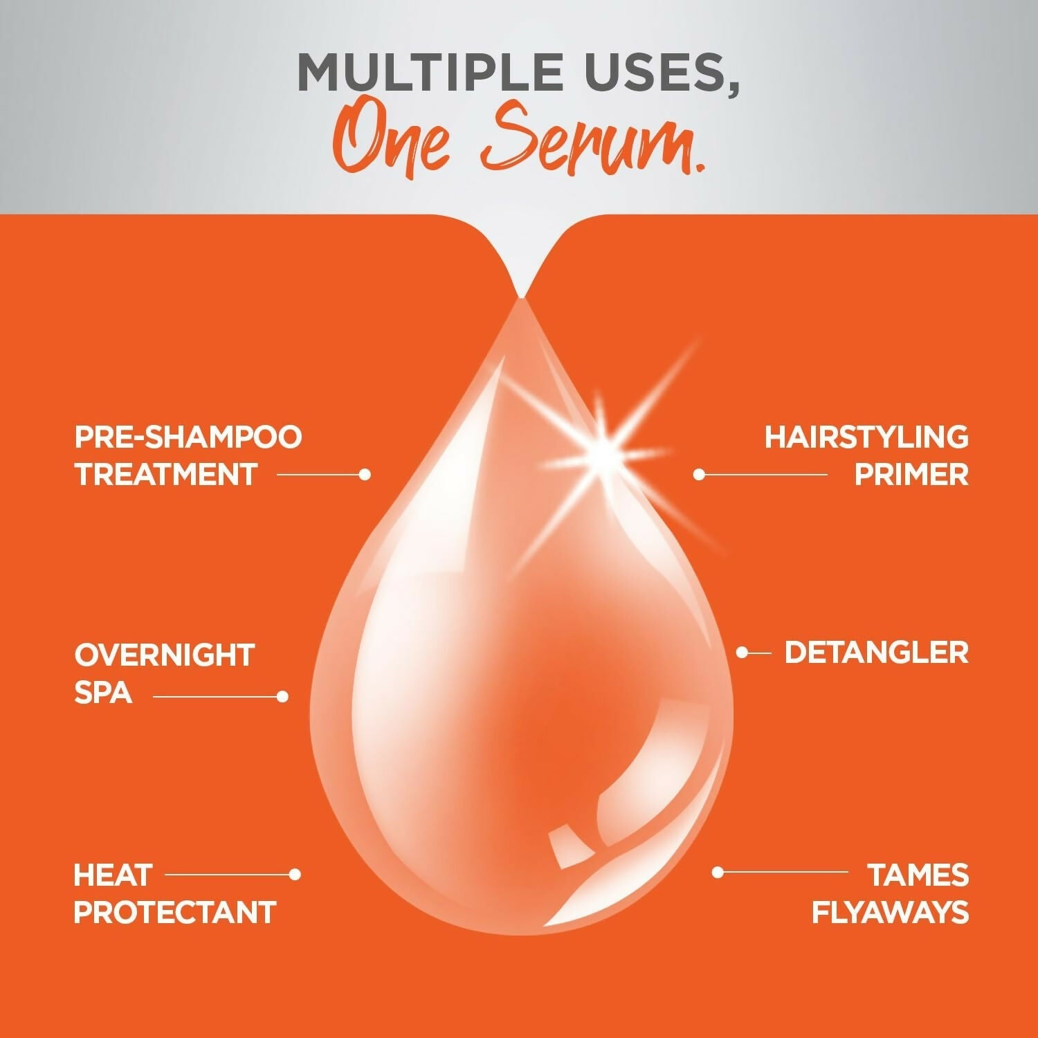 - Utilize the serum prior to styling your hair or utilizing heat styling tools to shield your hair from damage. For optimal outcomes, apply along the hair length as a nourishing treatment before shampooing and as an overnight regimen before bedtime.