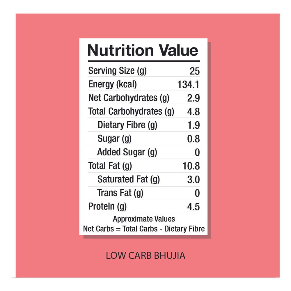 Enjoy a Low Carb alternative to your beloved aloo bhujia, with the same delightful taste, but without the carbs and unnecessary additives. We excel in crafting Bhujia that is both wholesome and delectable while significantly reducing Carbs!- Namkeens are all about savor and crispiness. We've masterfully recreated the classic minty aloo bhujia Flavor, maintaining the texture and crunch of the alu bhujia sev; this version is nutritious and immensely gratifying.