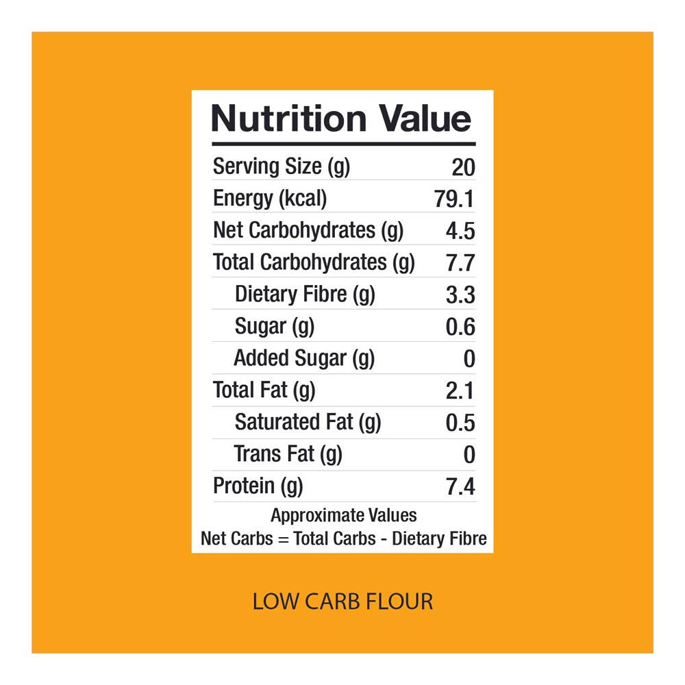 Ideal Low Carb diet partner: Lo! Low Carb Flour is the ultimate soy-free flour for those aiming to adopt a healthier eating lifestyle. This delightful blend is crafted with premium ingredients, rich in fiber, protein, and nutrient-packed superfood seeds.- Composed of whole wheat flour, Groundnuts, Isolated Wheat Protein, and a mix of seeds (Sunflower, Flax, Sesame, Melon, Pumpkin), along with Defatted coconut flour