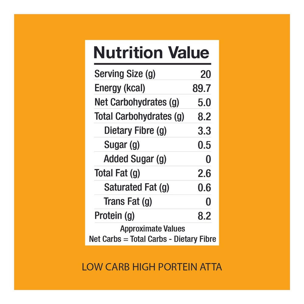 Experience the ultimate Low Carb, High Protein Flour enriched with nutritious superfood seeds, soy flour, and groundnuts. An essential staple for anyone following a high protein regimen.- Easily substitutes regular Atta for preparing a variety of dishes such as pulkas, roti, pooris, parathas, brownies, pasta, and more.