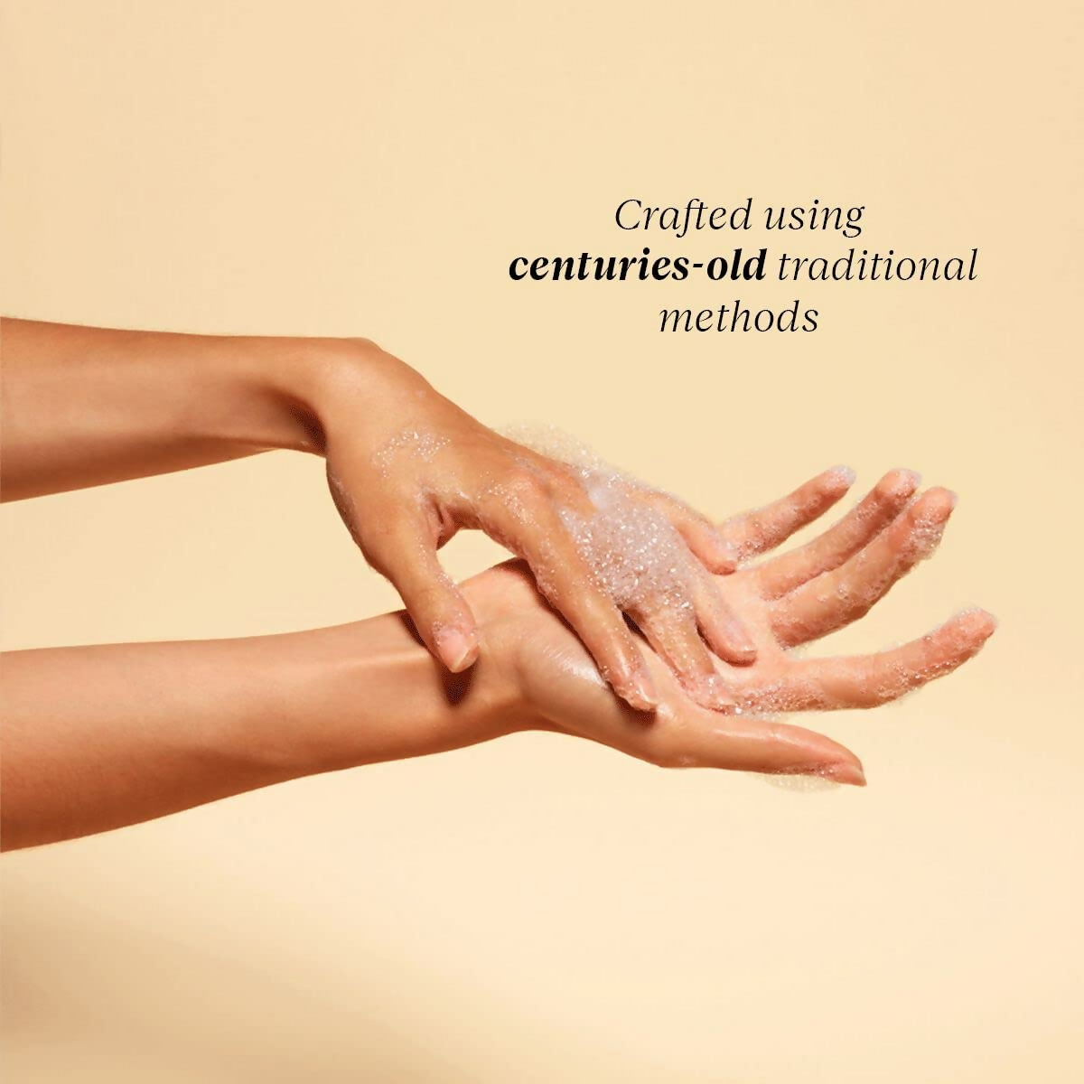 - Moisten the palms of your hands. Then, dispense a small amount of the liquid soap into your palm and rub your hands together to produce a lather. Clean the front, back, and fingers for a few seconds, then rinse thoroughly with water.