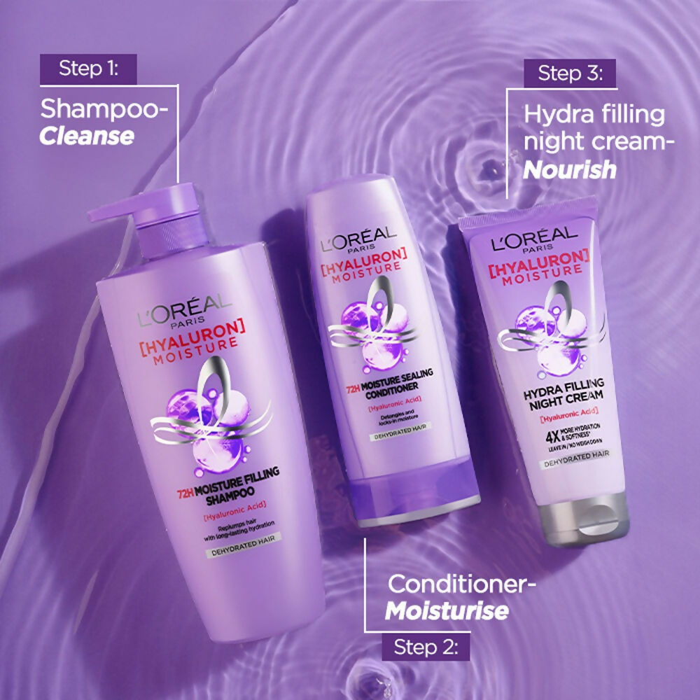 L'Oreal Paris Hyaluron Moisture Combo for 72HR Hydrated Hair Shampoo + Conditioner + Night Cream