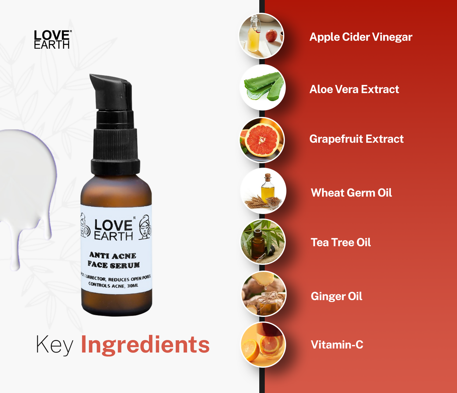 - The Anti Acne Serum from Love Earth minimizes and corrects the open pores. It furiously reserves the collagen and increases its production in the skin cells to give it a more youthful glow.
