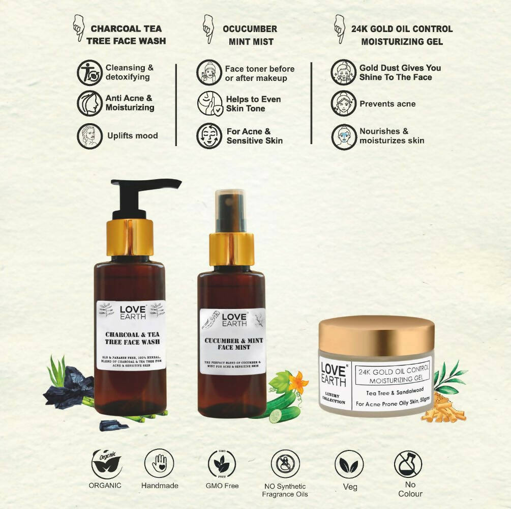 - Love Earth 24k Oil Control Moisturizing Gel (50 g): This gel prevents the proliferation of bacteria that cause acne, curbing future breakouts. It also aids in managing sebum production, leaving your skin feeling fresh and clean all day. Additionally, the sandalwood in this gel enhances instant skin radiance.
