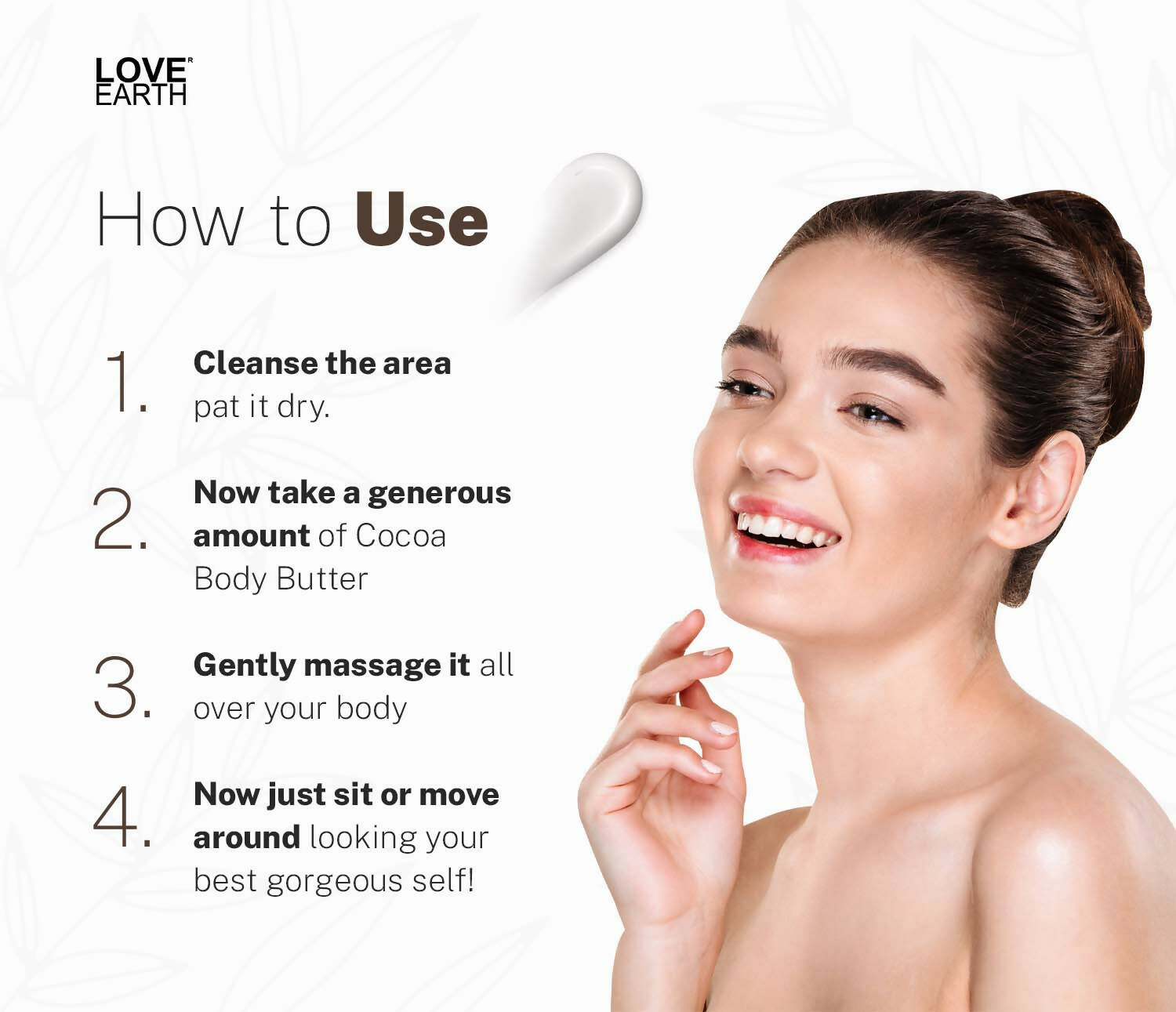- Then, take a generous amount of your preferred Cocoa Body Butter from Love Earth.