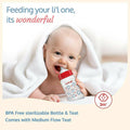About the product:LuvLap Natura Flow Feeding Bottles are crafted with an ergonomic design to ensure a comfortable grip while feeding your little one. Every LuvLap bottle is entirely BPA-free and can be fully sterilized. The teats are made from 100% Liquid Silicone and feature an anti-colic valve that directs air into the bottle, preventing it from reaching your baby's stomach. The teat's tip is grooved to promote peristaltic suckling, and its wide base supports a natural latch akin to breastfeeding, facilitating an effortless shift between breast and bottle feeding.
