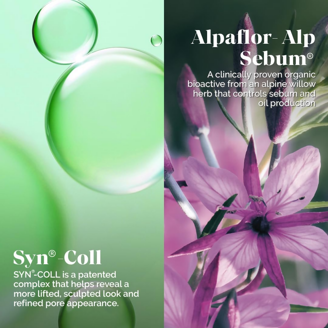 This powerful serum incorporates scientifically validated components designed to reduce pore visibility and control oil production. Expertly crafted with exclusive ingredients such as Alpaflor Alp-Sebum and Syn-Coll, alongside Galactomyces and Bifida Ferment Filtrate, it leaves the skin noticeably smooth, firm, and vibrant.