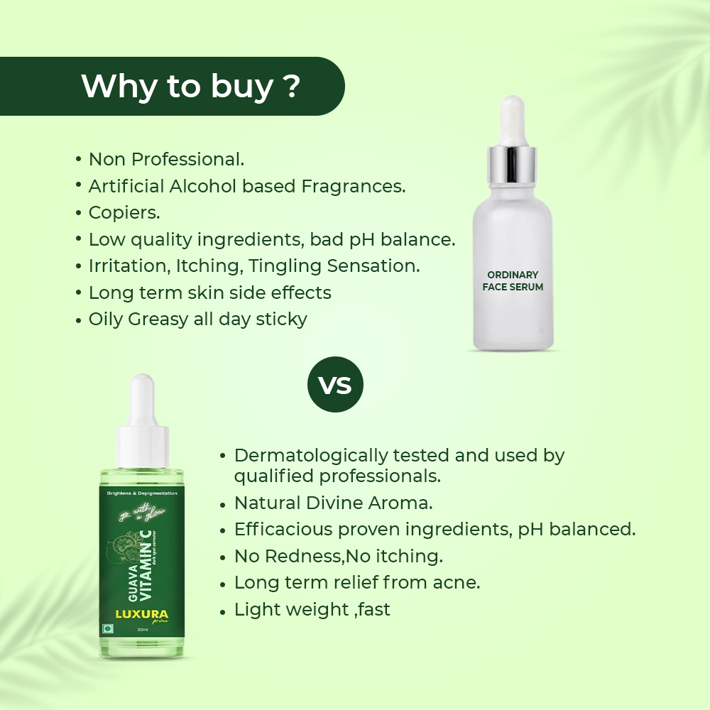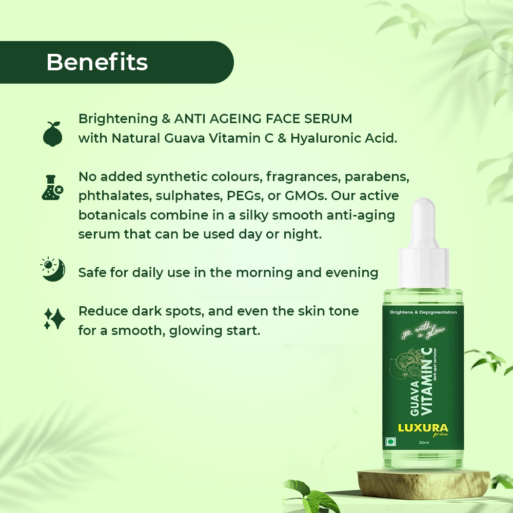 About the product:- This Guava Vitamin C Dark Spot Corrector serum facilitates optimal delivery of Vitamin C directly into your skin.