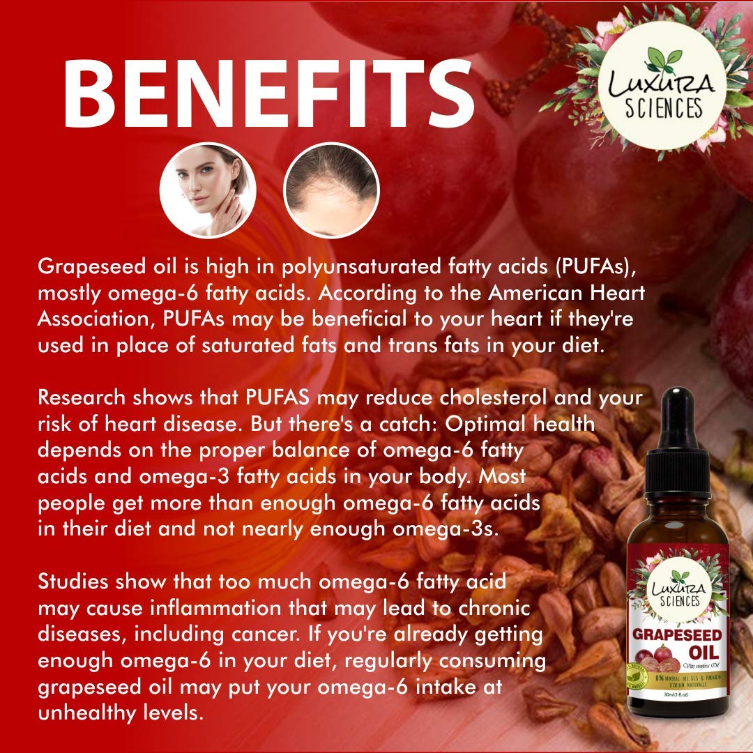 Luxura Sciences Organic Grape Seed Oil, 100% Pure, Natural & Cold-Pressed for Skin, Hair, Body