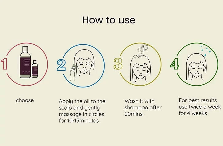 - Apply the oil to your scalp and gently massage in circular motions for 10-15 minutes.