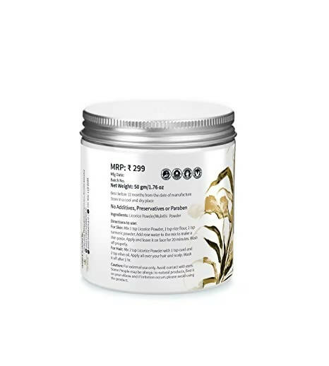 100% Pure Organic Licorice/Mulethi Powder. Entirely Natural and Herbal Product for Skin and Hair careCrafted in accordance with Ayurvedic Skin Care Therapeutic Standards. Suitable for all skin Types.