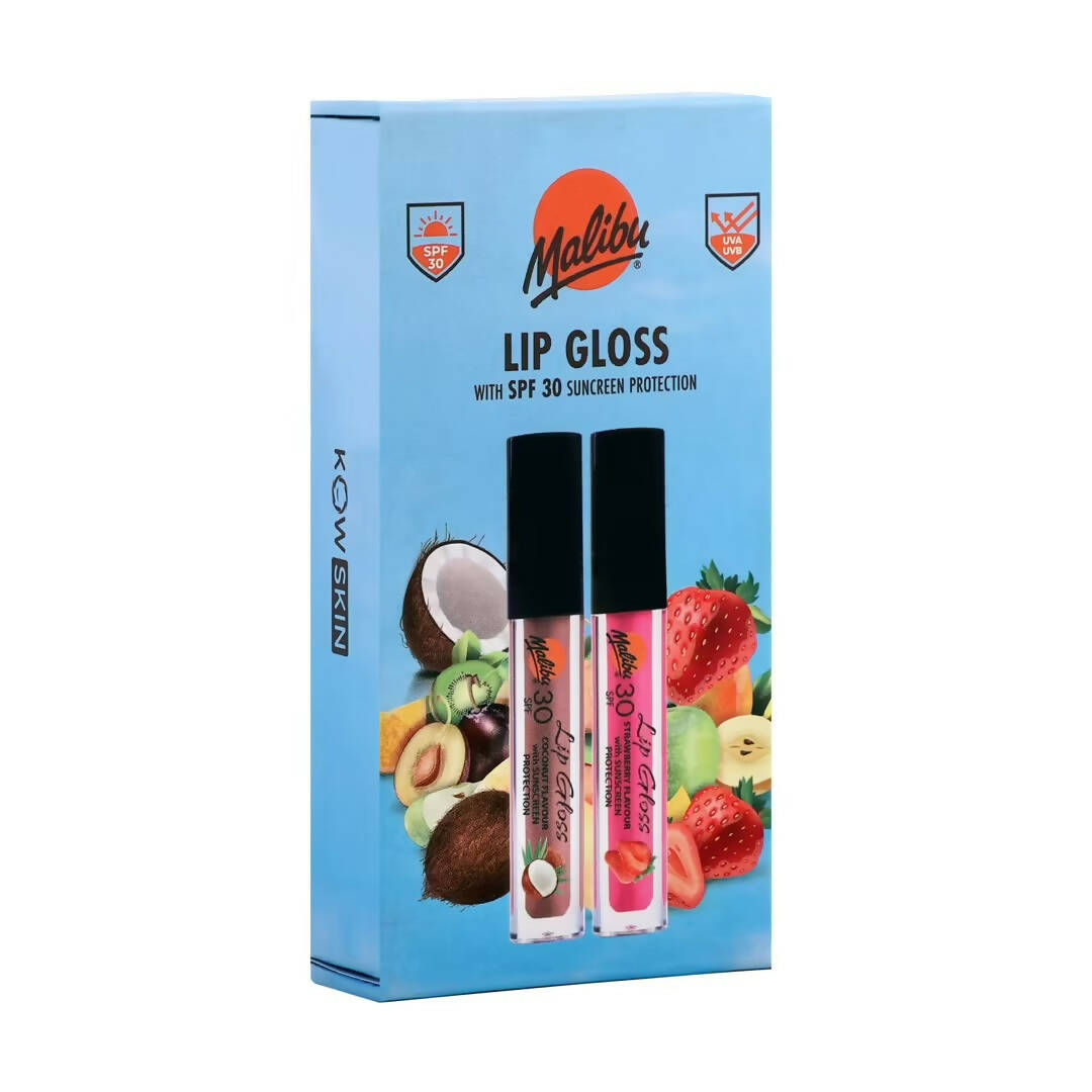 - The Malibu SPF 30 Lip Gloss Collection features two delightful flavors - coconut and strawberry. Boasting an SPF of 30, these glosses offer exceptional protection for your lips against the sun, cold, and wind. They are resistant to water and shield your lips from UVA and UVB rays. Both variants are entirely vegan and perfect for daily wear.