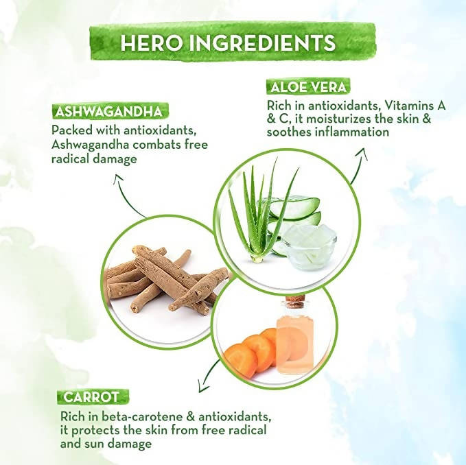 Ingredients:- Aloe Vera, Carrot Extract, Red Raspberry Seed Oil, Ashwagandha