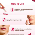 - Step 3: Apply it beneath or over lipstick to prevent dryness.