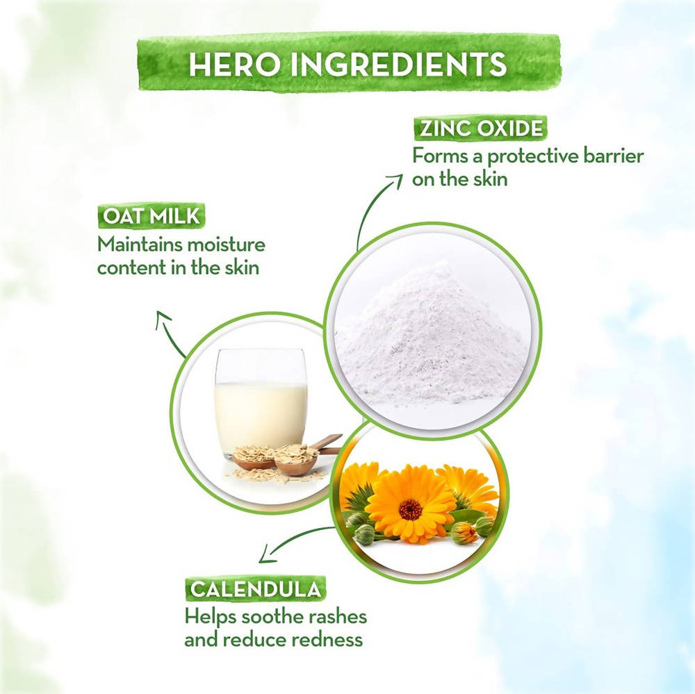 - Enriched with Oat Milk, Calendula, Soybean Oil, and 15% Zinc Oxide, I create a protective shield on the skin and nurture it. I am also MadeSafe Certified and help ward off any moisture. Thanks to Mamaearth's philosophy of no toxins and no harmful chemicals, you won't find any Silicones, Parabens, Mineral Oil & Dyes in me.