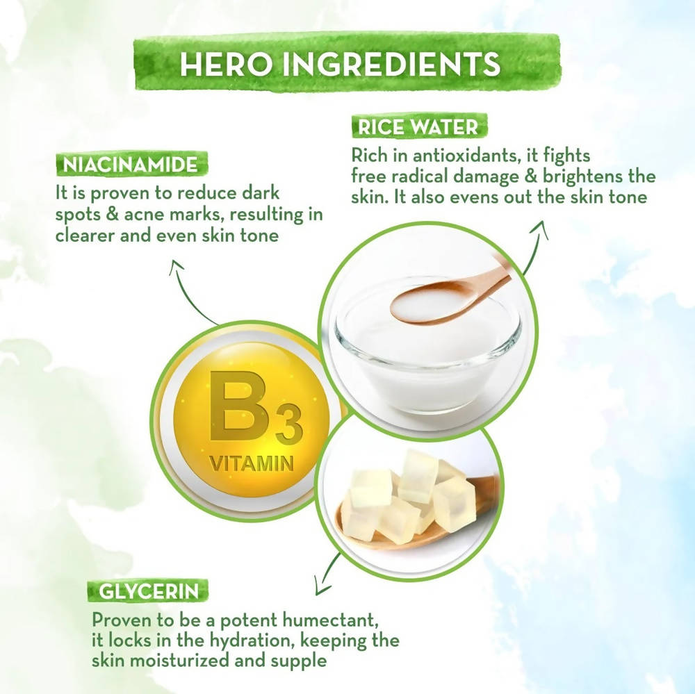 Ingredients:- Rice Water, Niacinamide, Glycerin, Vitamin E