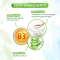 - Boasting a rapid-absorption and feather-light composition, this sunscreen is loaded with luminosity-enhancing components - Rice Water and Niacinamide. Rice Water is rich in antioxidants that support a brighter complexion and more even skin tone. Niacinamide aids in repairing sun-induced damage and diminishes hyperpigmentation without leaving any white residue. Additionally, aloe vera is included to calm sunburns.