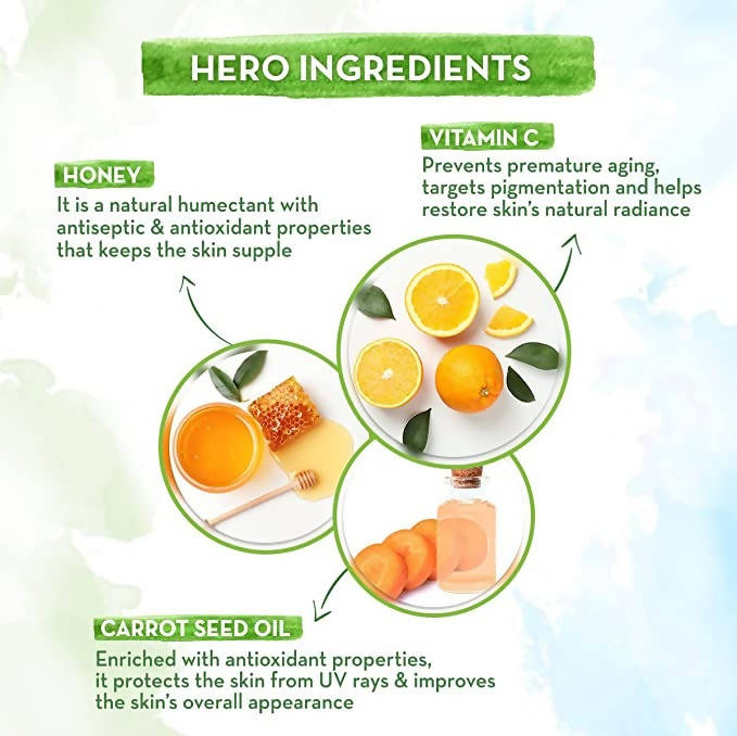 Ingredients:- Vitamin C, Carrot Seed Oil, Red Raspberry Seed Oil, Honey, Shea Butter