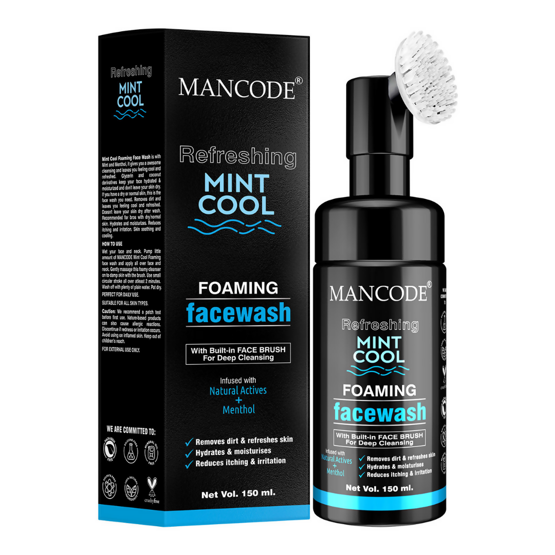Experience the invigorating sensation of Mancode Refreshing Mint Cool Foaming Facewash, equipped with an integrated face brush for thorough cleansing. Enriched with natural actives and menthol, it effectively eliminates impurities while revitalizing and hydrating your skin. This foaming face wash for men delivers exceptional cleansing, leaving you feeling fresh and invigorated. Glycerin and coconut derivatives ensure your skin remains moisturized and supple, avoiding dryness. Ideal for those with dry or normal skin, this face wash effortlessly removes grime and imparts a refreshing coolness.