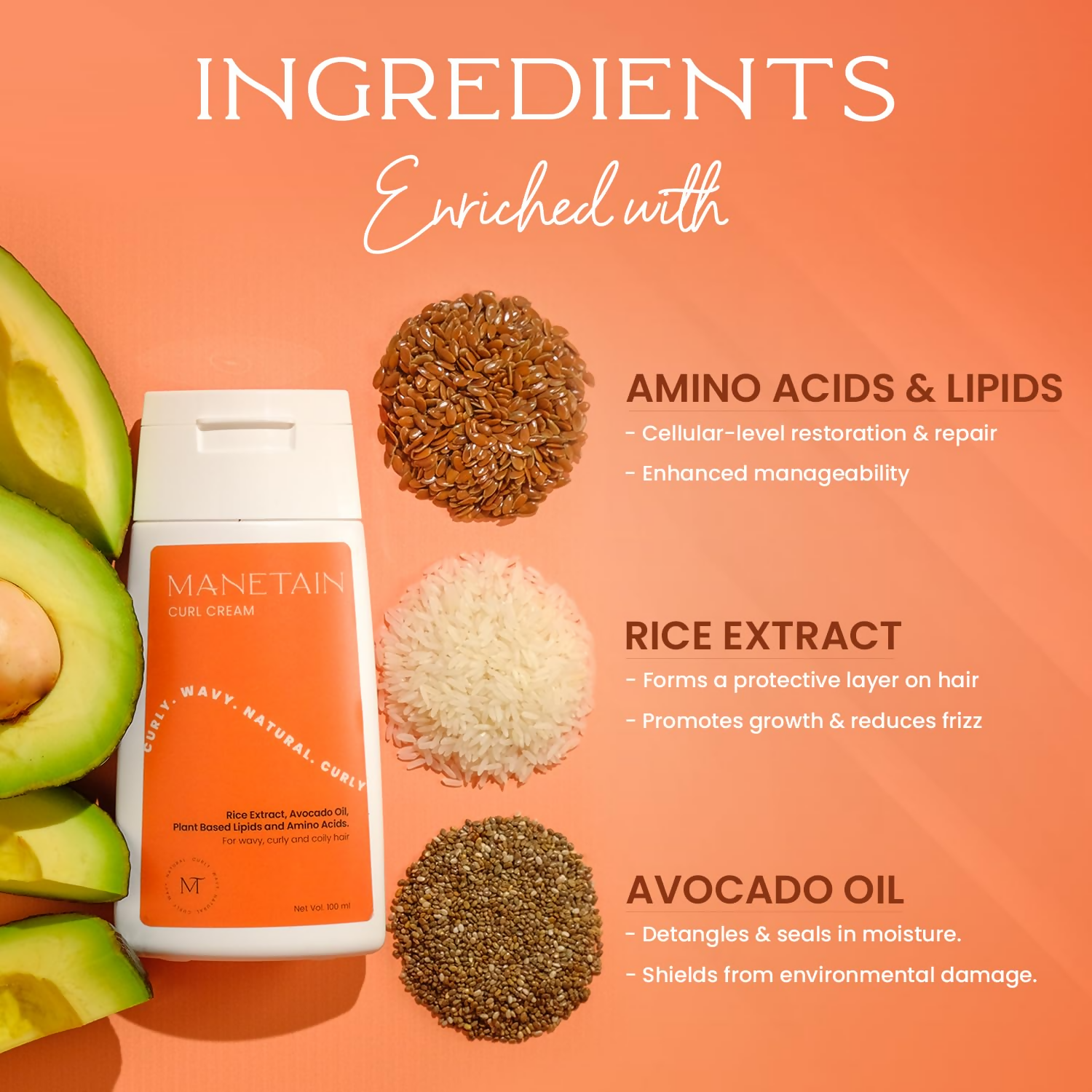 MANETAIN presents the "MANETAIN CURL CREAM" designed to amplify your natural hair texture and curl structure with our moisturizing and fortifying Curl Cream. Enriched with rice extract, avocado oil, plant-derived lipids and amino acids, along with calming amber and lavender, our Curl Cream provides gentle hold, elasticity, shine, and pure delight!
