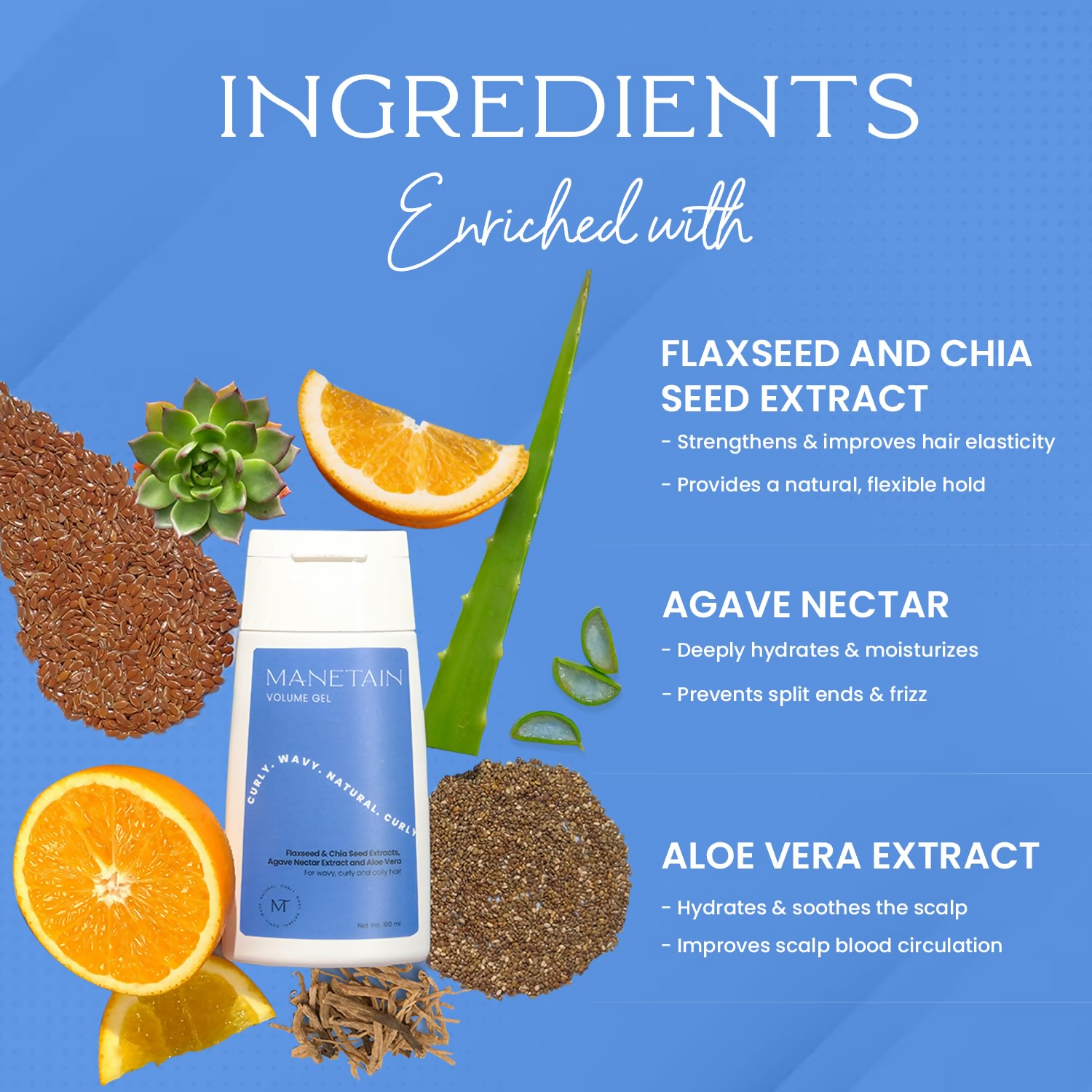 Introducing the MANETAIN VOLUME GEL, designed to give you perfectly sculpted, voluminous curls and waves with a zesty citrus aroma. Crafted with plant-derived ingredients that replenish, fortify, and revive, our Volume Gel offers a medium hold while imparting remarkable sheen.