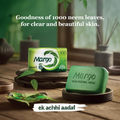 Margo Original Neem Soap is crafted from 100% pure neem and enriched with Vitamin E, delivering hydrating benefits. Each bar encapsulates the essence equivalent to 1000 neem leaves. The soap boasts a rich heritage.