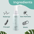 - Redensyl 3%, Procapil 3%, Saw palmetto, Biotin