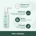 - Apply 2-3ml of hair vitalizer to the targeted area at night, followed by a gentle massage.