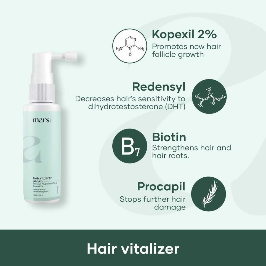 - Address weak hair, irritated scalp, thinning hairline, excessive shedding, and coarse texture with a single solution. It's time to seize control of our hair health and eliminate dandruff using the Mars Hair Fall Control Essentials Pack.