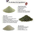 - Experience the opulent fusion of rice enzymes and green tea with Matra French Green Clay Mask! This revitalizing mask is perfect for deep cleansing, detoxifying, and nourishing your skin, significantly improving its texture. Green clay acts as a powerful magnet, effectively extracting dirt, pollutants, and impurities, while rejuvenating your youthful glow and enhancing a luminous complexion. Rich in vitamins C and A, rice enzymes help repair damage caused by aging, sun exposure, and environmental factors. They work to calm the skin and assist in acne treatment. Green tea, abundant in vitamins and antioxidants, excels in skin purification and aids in achieving a uniform and clear skin tone.