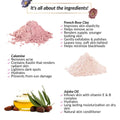- Infused with silica, calcium, iron, and magnesium, rose clay helps to unclog pores, enhance skin elasticity, and foster cell renewal. It renders the skin soft and youthful. This clay sheds dry, dead skin cells, improving the skin's tone and clarity. It is the ideal skincare element to alleviate irritation from dry skin issues like acne and blackheads. Calamine is renowned for its diverse skincare advantages and effectively addresses various skin concerns. With its antiseptic and anti-allergic attributes, rose clay aids in acne removal without leaving marks. Calamine also includes kaolin, which promotes a radiant complexion with regular use. Consistent application of this clay mask will diminish dark spots and maintain skin hydration. Additionally, it assists in mitigating damage caused by sun exposure. Jojoba oil, enriched with vitamin E and B complex, is incredibly hydrating, offering prolonged moisturization and serving as a natural skin conditioner. With the combined benefits of French rose clay, calamine, and jojoba oil, this face mask is a magical elixir and a must-have in your essential skincare collection.