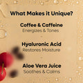 Packed with Antioxidants: The antioxidant-rich Coffee in this face mist revitalizes and refreshes your complexion with every spray. Caffeine, known for its anti-inflammatory properties, helps maintain skin tone and eases any inflammation.