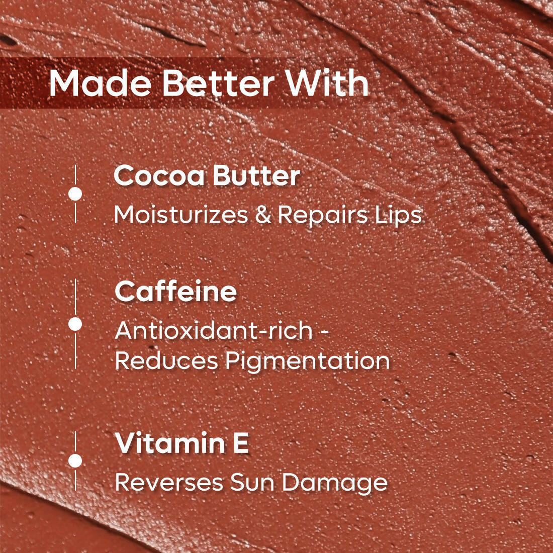- Cocoa Butter, Vitamin E, Caffeine