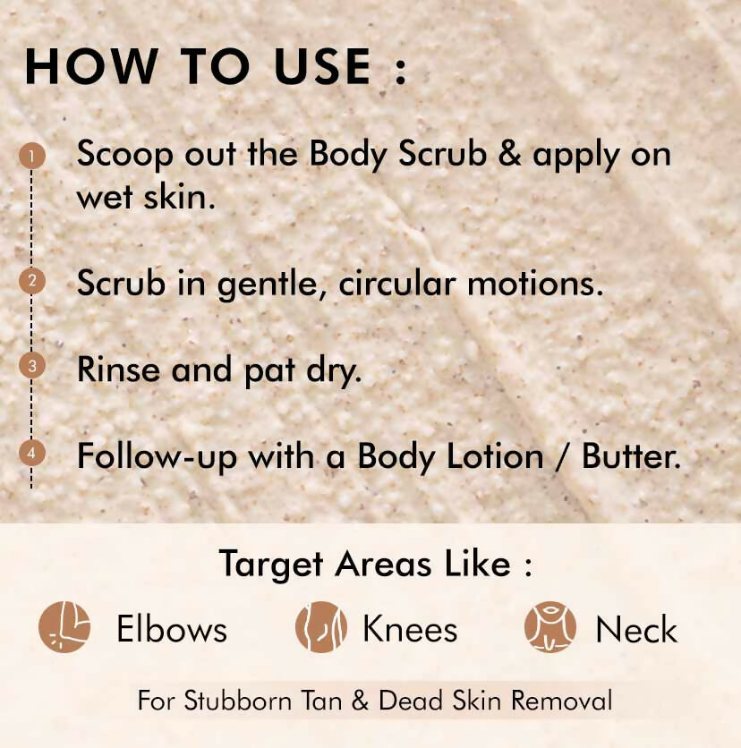 - Step 1: Scoop out the Body Scrub and apply on damp skin.