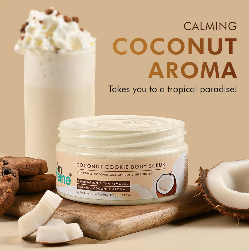 mCaffeine Coconut Cookie Body Scrub, Exfoliates & Removes Tan, Calming Coconut Aroma