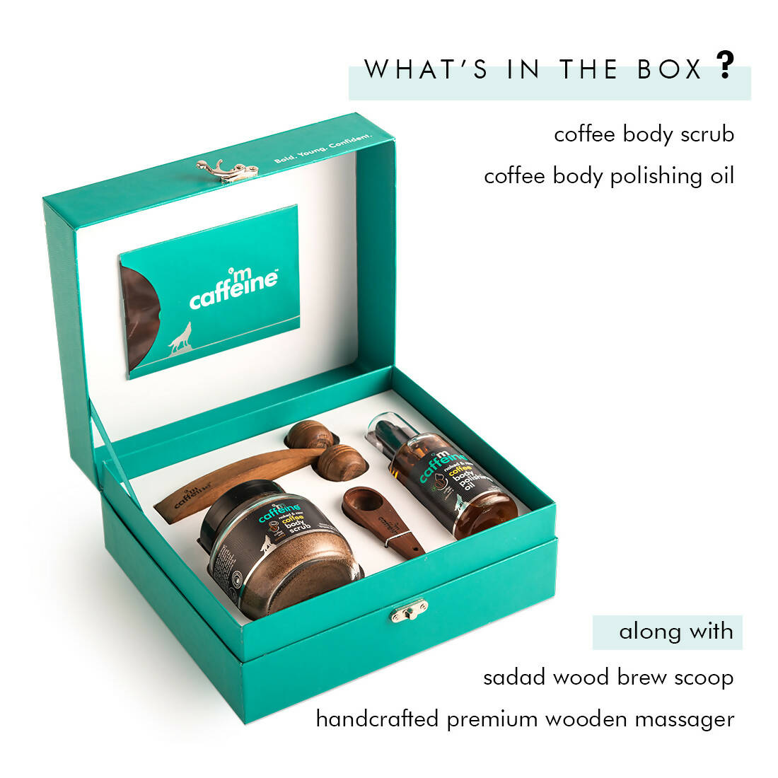 The Kit includes the Coffee Body Polishing Oil and the Coffee Body Scrub, accompanied by a handcrafted premium wooden massager. Enriched with potent elements like Rosehip Oil, Sweet Almond Oil, Vitamin E, and Coconut Oil, this kit is an ideal gift for your dear ones. A gift suitable for all, the mCaffeine Coffee De-stress Gift Kit is the ultimate choice for those you care about!