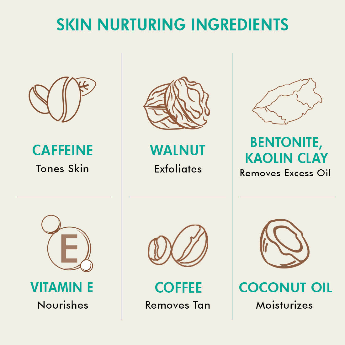 - Naked and Raw Coffee Face Scrub - Infused with the excellence of skin-enhancing elements like Pure Arabica Coffee and essential Vitamin E, this Face Scrub contains perfectly sized particles that are gentle on your skin. They maintain skin hydration. Suitable for both Men & Women, the scrub efficiently addresses rough and uneven skin texture, early signs of aging, and scars.