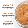 - Infused with ultra-nourishing Shea Butter, Coffee Oil, Caffeine, and Vitamin E, the Coffee Lip Balm is a powerhouse of nourishment. Shea Butter repairs and hydrates, while Coffee Oil intensively nurtures. Additionally, the Caffeine in Coffee Oil aids in diminishing pigmentation with the assistance of Vitamin E.