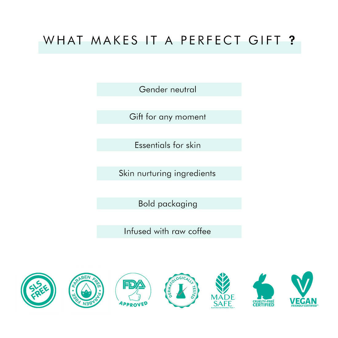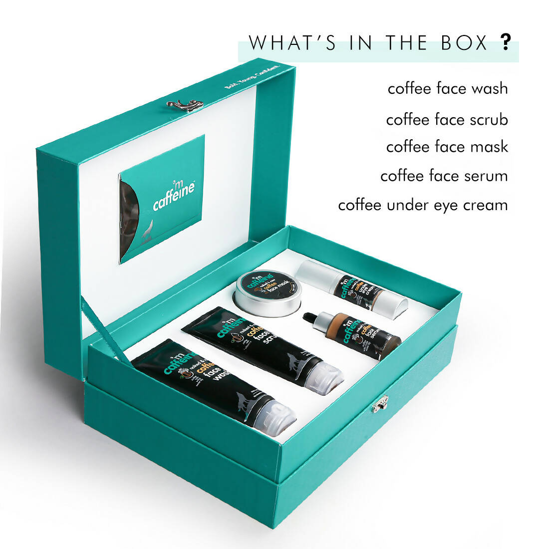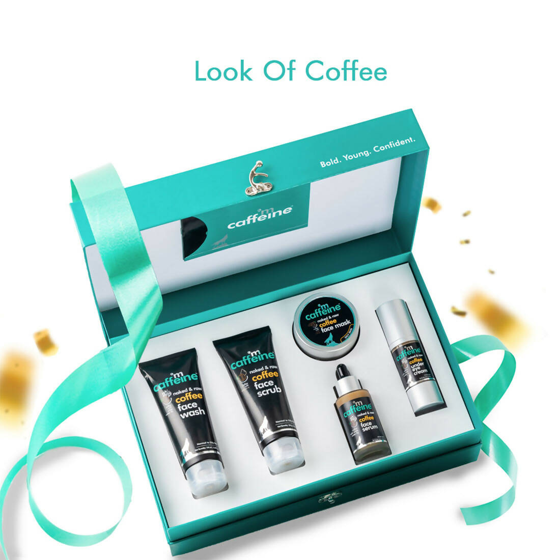 The set features the mCaffeine Coffee Face Wash, Coffee Face Scrub, Coffee Face Mask, Coffee Face Serum, and Coffee Under Eye Cream, all elegantly packaged in a premium gift box. With its potent ingredients, this kit offers a comprehensive skincare regimen to refresh your complexion. A versatile gift suitable for anyone, the mCaffeine Coffee Look - Gift Kit is a must-have on your gift list!