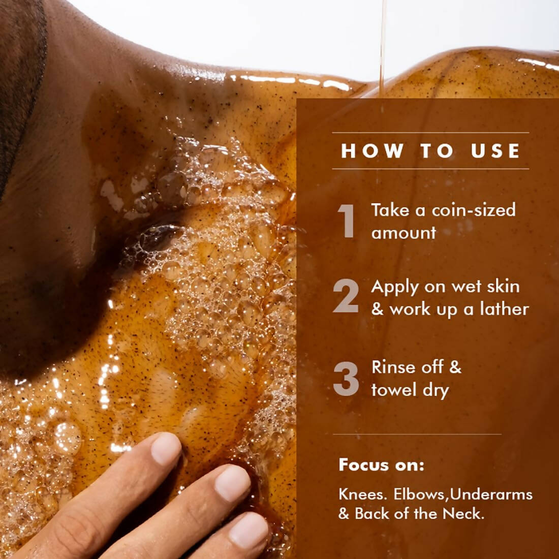 - Step 3: Rinse thoroughly with water and pat dry with a towel. Follow up with a body lotion.