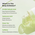 - Confronting body acne, especially in elusive spots like the back, can be challenging! Introducing the Green Tea & 2% BHA Salicylic Acid Body Exfoliator, an extraordinary overnight remedy that eliminates 99.93% of acne-causing bacteria! BHA-Salicylic Acid provides deep cleansing, exfoliation, and impurity removal from the pores.