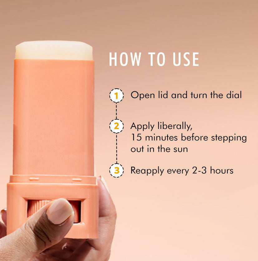 - Step 1: Remove the cap and twist the dial to raise the sunscreen stick