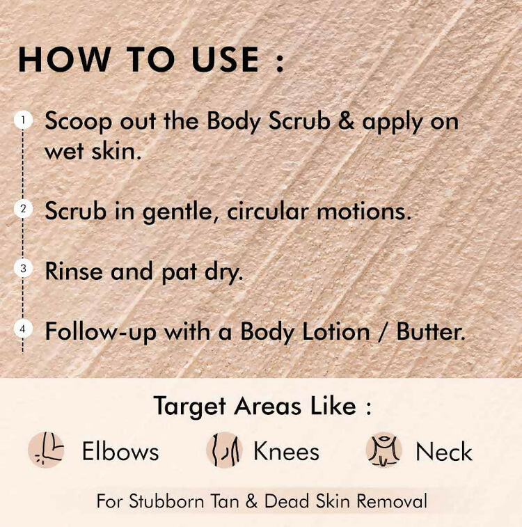 - Step 1: Scoop out the Body Scrub & apply on wet skin.