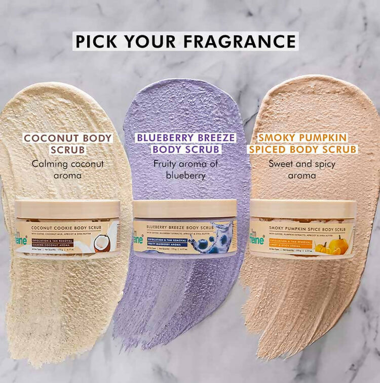- Experience the transformation as tan and dead skin vanish with the application of this body scrub. Its delightful sweet and spicy aroma captivates your senses! Enriched with vitamin A and antioxidants, Pumpkin Extract effectively de-tans and brightens the skin. With antioxidant-rich Coffee, it helps eliminate tan and enhances skin texture. Apricot in this scrub gently exfoliates, removing dirt, grime, and dead skin cells, leaving your skin clear and supple. Shea Butter completes the experience by moisturizing, nourishing, and softening the skin. The scrub's creamy texture glides effortlessly, making your shower routine luxurious and indulgent!