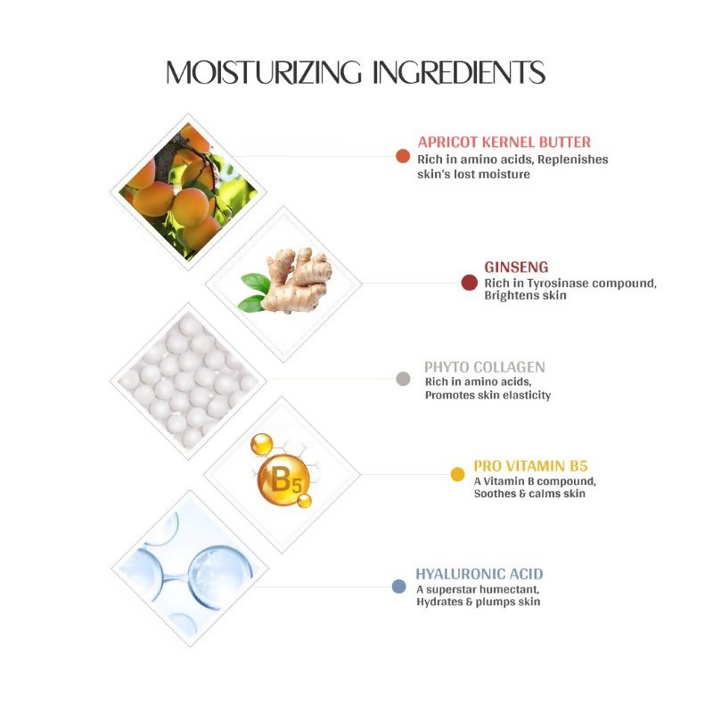 - Giloy Extract, Ginseng Extract, Macadamia Butter, Cold Pressed Moringa Oil, Ginger Oil