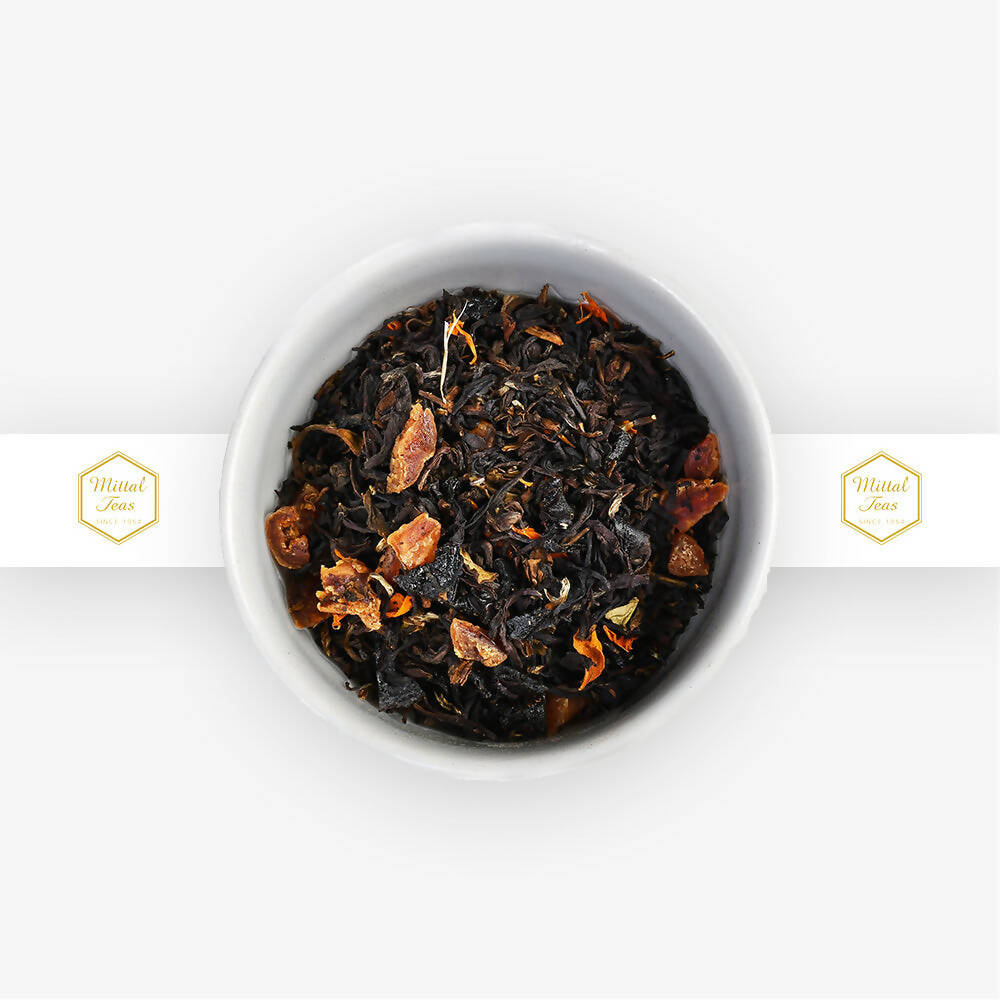 - This exotic fusion features high-altitude leaf tea combined with natural fruit extracts, herbs, and spices. The tea leaves impart a luxurious golden hue and the quintessential taste of black tea. The additional elements create a uniquely tropical flavor experience.