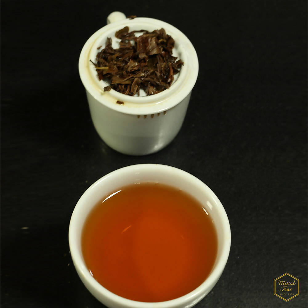 - This tea features small leaves due to early plucking. When properly brewed, it presents a vibrant golden hue, an appealing aroma, and a delectable taste, with a uniquely lingering musky essence. It's a distinctive offering from the renowned tea region of Darjeeling.