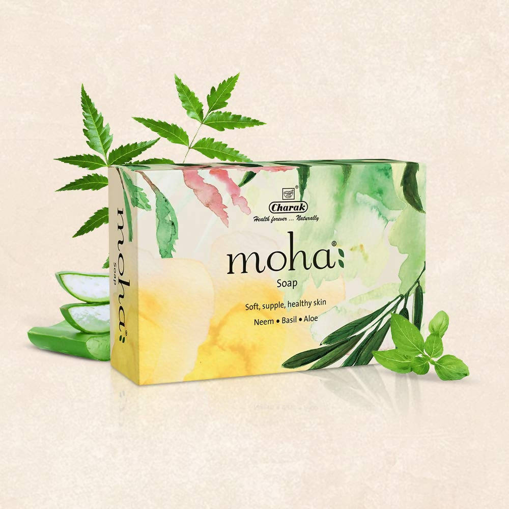 moha: Herbal Soap purifies everyday impurities and safeguards your skin against infections and blemishes. Infused with antibacterial herbs such as Neem, Tulsi & Aloe, moha: Herbal Soap: